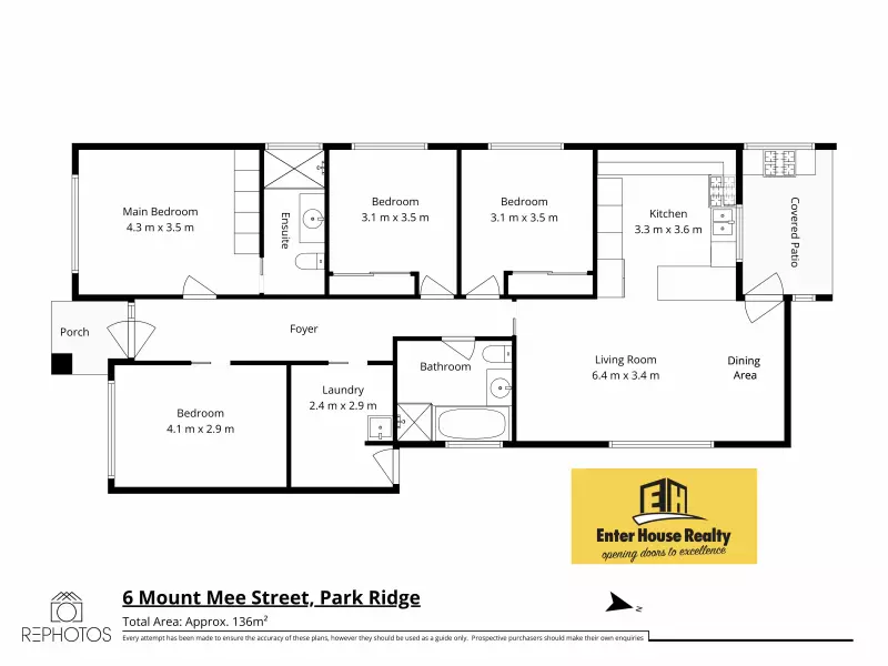 Disclaimer: Whilst every care is taken in the preparation of the information contained in this marketing, no legal responsibility can be accepted by Enter House Realty or any loss or damage resulting from the content or the use of this information. Prospective buyers should make their own enquiries to satisfy themselves as to its accuracy. Any photographs show only certain parts of the property as it appeared at the time they were taken. Please note any boundaries/areas shown on the images are indicative only and are not to be relied upon. Amounts, measurements, distances and all other numerical information is approximate only.