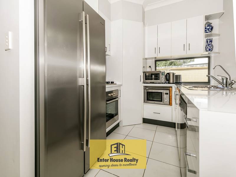This elegant home presents a modern gourmet kitchen, spacious dining and lounge room which opens out to a covered alfresco where you can enjoy time with your loved ones. The open plan design with a modern kitchen overlooking the family room has a seamless flow onto the outdoor alfresco area.