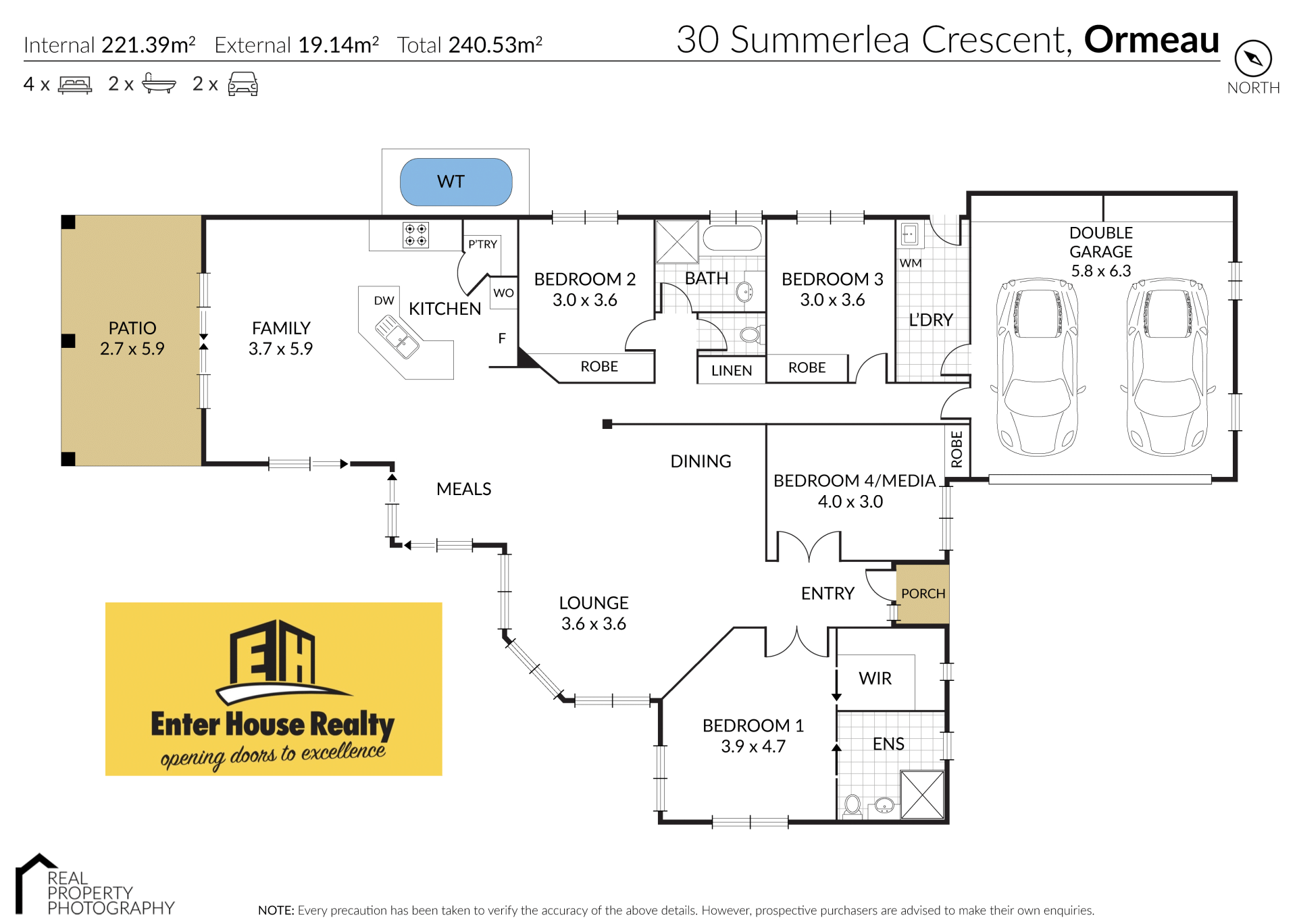 Disclaimer: Whilst every care is taken in the preparation of the information to contained in this marketing, no legal responsibility can be accepted by Enter House Realty or any loss or damage resulting from the content or the use of this information. Prospective buyers should make their own enquiries to satisfy themselves as to its accuracy. Any photographs show only certain parts of the property as it appeared at the time they were taken. Areas, amounts, measurements, distances and all other numerical information is approximate only.